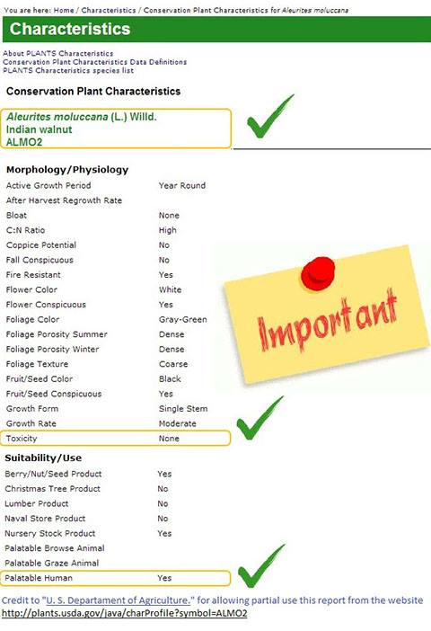 Esta semilla (Aleurites moluccana), es el hueso de una fruta llamada Guahaya que se da de un árbol de nombre candil o kukui, es un árbol del sur de Brasil del que se obtiene un aceite que es usado como barniz.